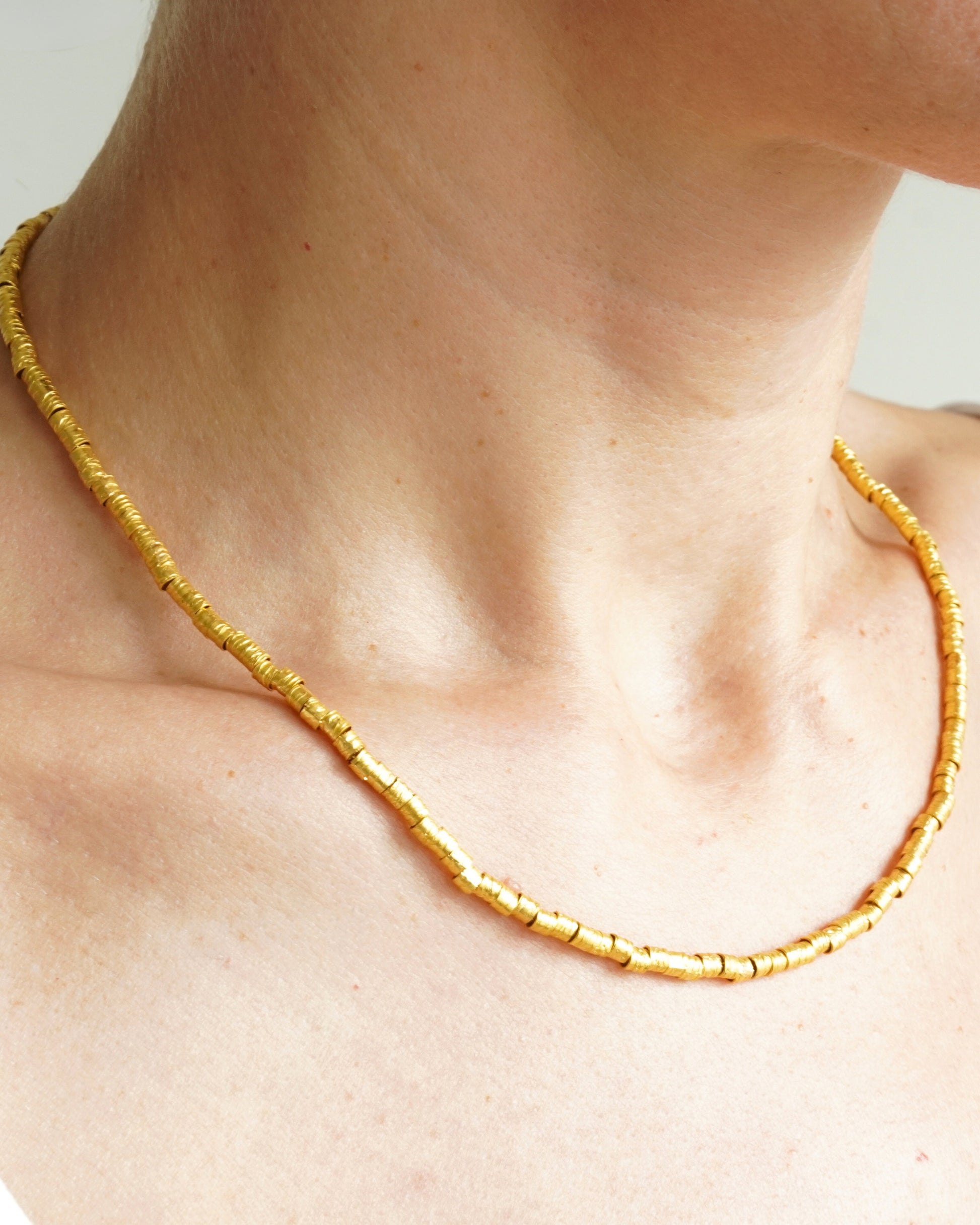 Hand-crafted raw tubular 22k gold beads on 22k chain necklace.