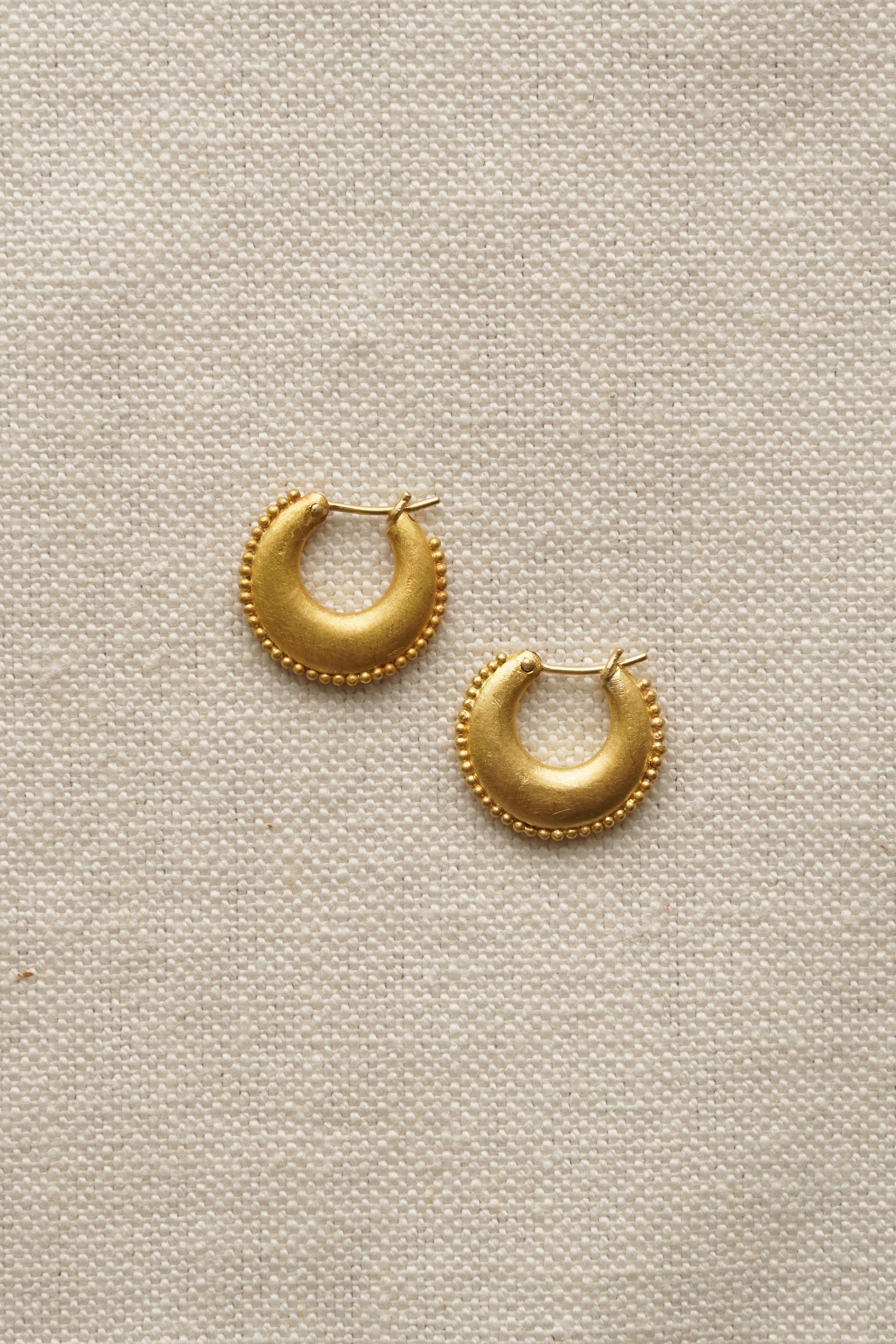 Inspired by traditional Greek boat hoops, the Granule Hoops are entirely handmade
