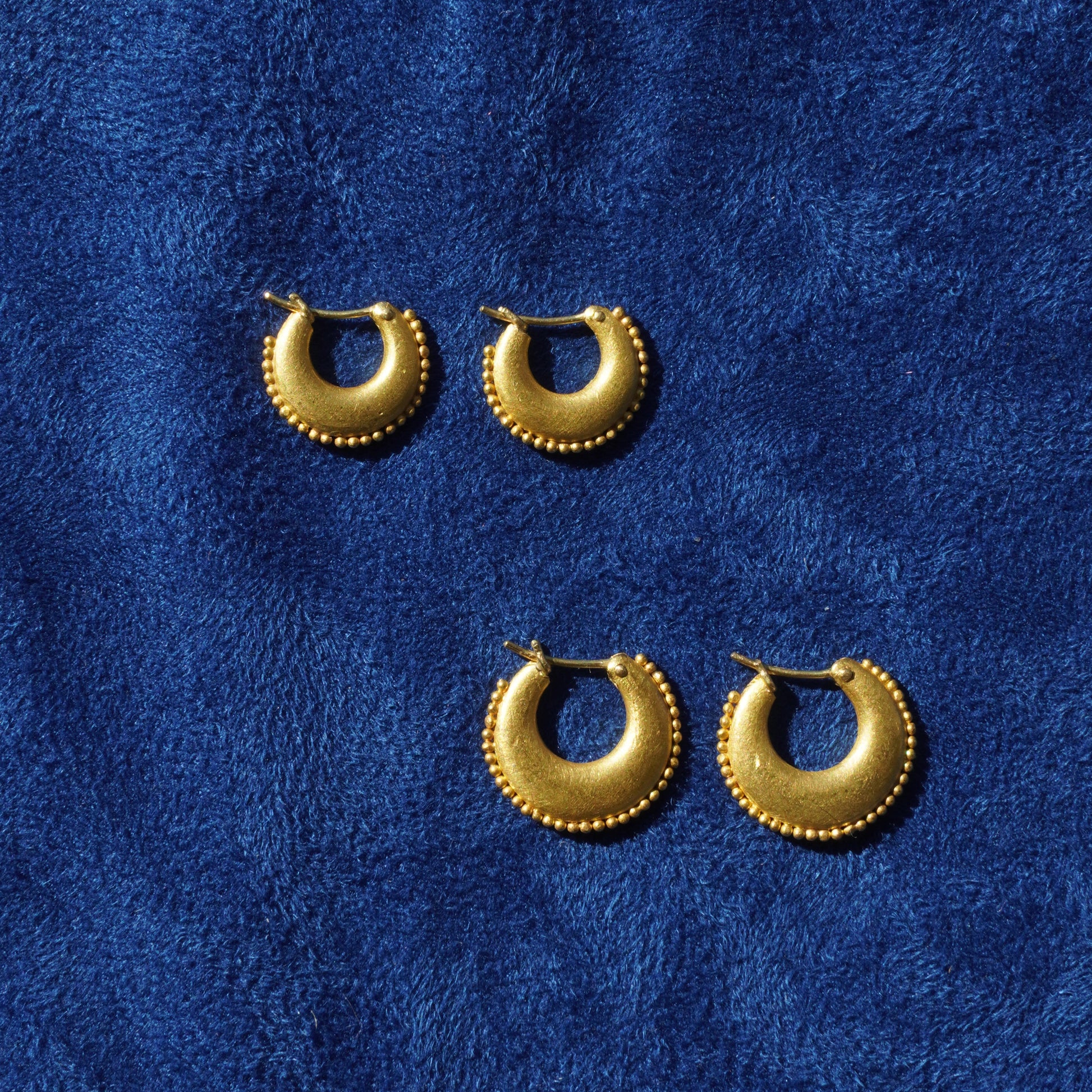 Inspired by Greek and Roman crescent forms found in ancient gold adornments, the Granule Hoops are entirely handmade in 22karat in our San Francisco, CA studio.